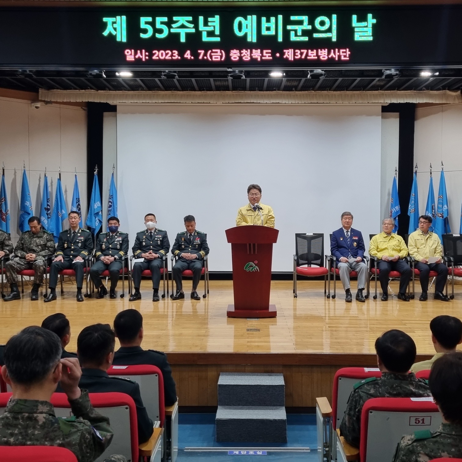 충청북도는 창설 제55주년 예비군의 날을 기념하여 이우종 행정부지사, 37사단장, 도내 예비군 지휘관 등 250여명이 참석한 가운데 4월 7일 충청북도 미래여성플라자 대강당에서 기념식을 개최했다.