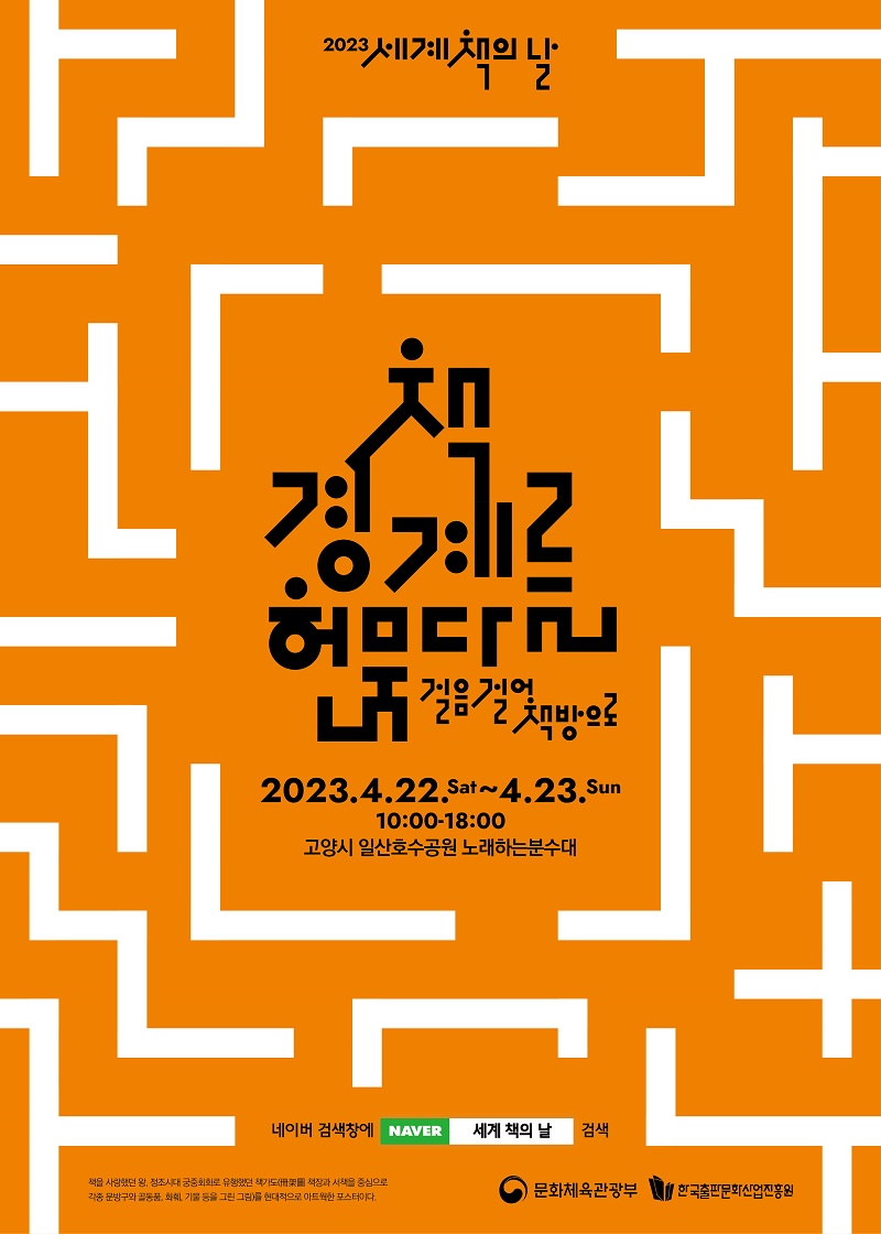 문화체육관광부는 오는 22일부터 23일까지 ‘2023 대한민국 책의 도시’인 고양특례시 일산호수공원에서 ‘책, 경계를 허물다. 걸음 걸어 책방으로’라는 주제로 독서문화 행사를 연다고 20일 밝혔다.
