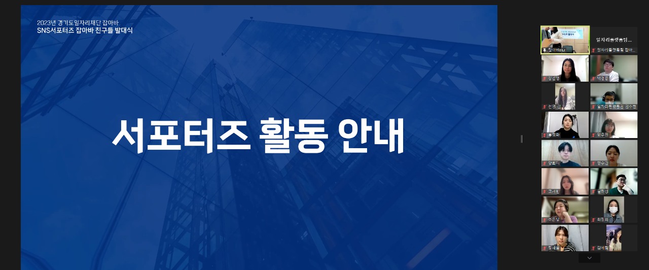 경기도일자리재단은 15일 온라인으로 일자리플랫폼 잡아바 서포터즈 ‘2023년 잡아바 친구들’ 발대식을 개최했다.