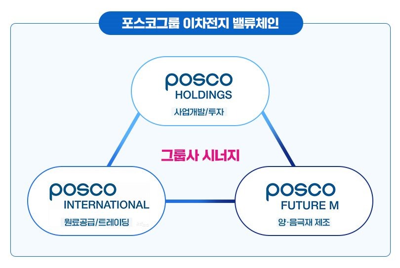 포스코인터내셔널이 이차전지 소재 원료 공급사업에 본격 뛰어듦에 따라 그룹내 이차전지 소재사업 밸류체인도 더욱 견고해질 것으로 전망된다.