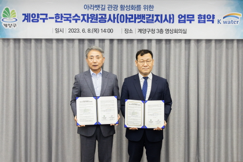 인천광역시 계양구는 8일 계양구청 영상회의실에서 한국수자원공사 아라뱃길지사(지사장 김정경)와 '아라뱃길 관광 활성화를 위한 업무 협약'을 체결했다.