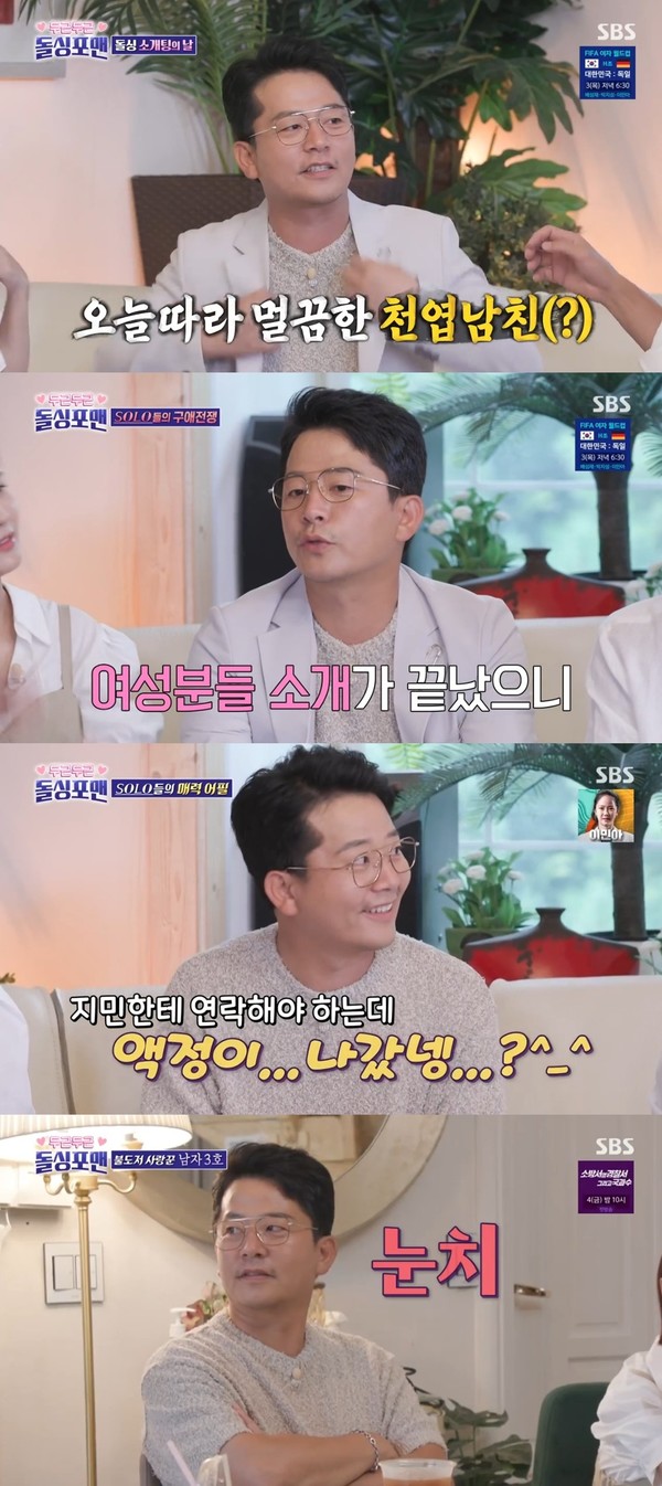 김준호는 1일(어제) 방송된 SBS ‘신발 벗고 돌싱포맨’(이하 ‘돌싱포맨’)에서 여자친구 김지민의 찬스로 탁재훈, 임원희, 이상민의 그룹 미팅을 주선했다.