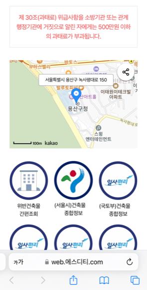 현재 건축물 위반 여부 등 건축물 정보를 조회하려면 '정부24' 또는 건축행정시스템 '세움터'에 접속 후 건축물대장을 열람하거나 발급해야 한다.