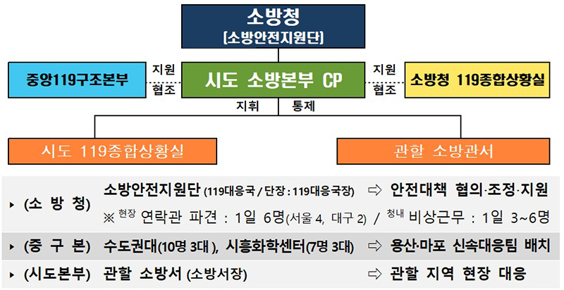 남화영 소방청장은 “만일의 사고에 대비해 신속한 상황전파와 현장대응이 가능하도록 유관기관 간 긴밀한 협조를 통해 철저하게 대비하겠다”고 밝혔다.