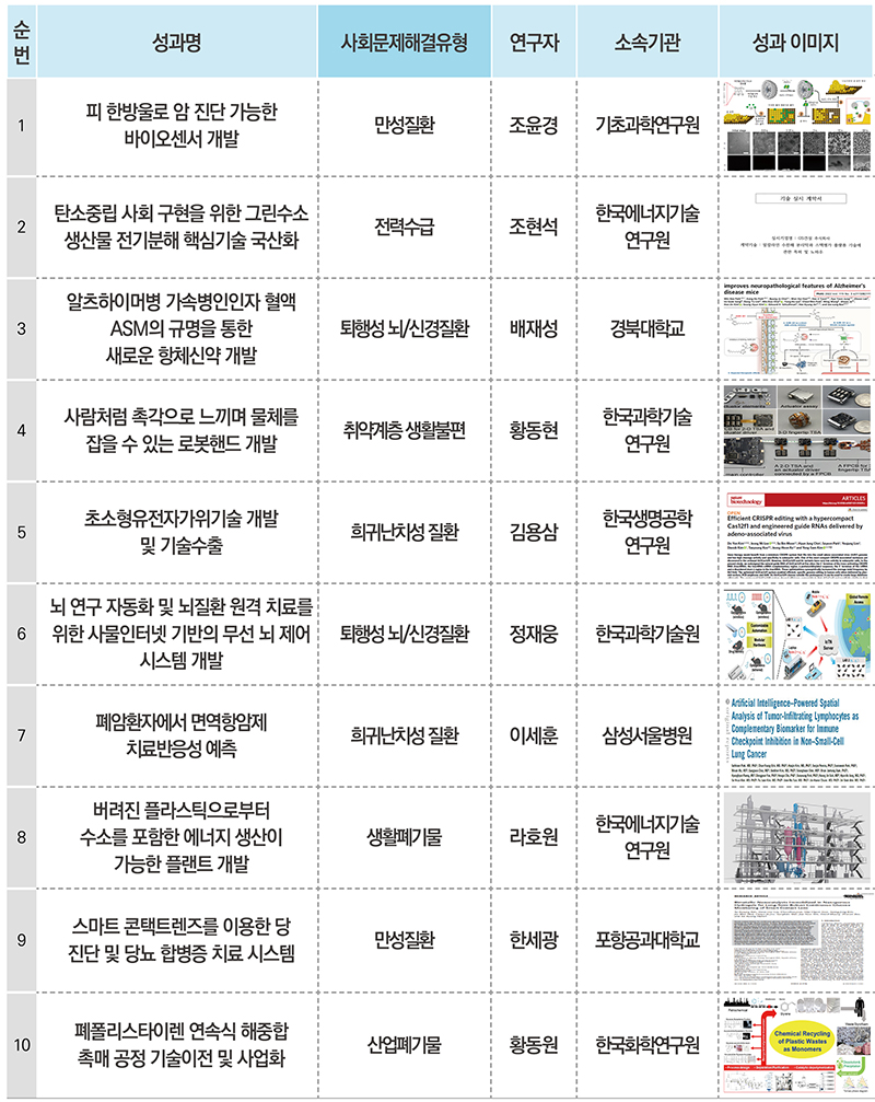 한편 과기정통부는 대국민 온라인 투표를 통해 이번에 선정한 우수성과 100선 중 사회문제해결성과 10선도 함께 선정했다.