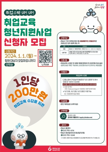 하남시가 지난해에 이어 2024년에도 청년 구직 활동 지원을 위해 미취업 청년 1인당 연 200만원의 취업 수강료를 지원한다.