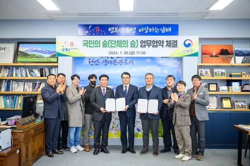 남해군은 지난 26일 군수실에서 서부지방산림청(함양국유림관리소)과 함께 '국민의 숲(단체의 숲) 업무협약식'을 개최했다.