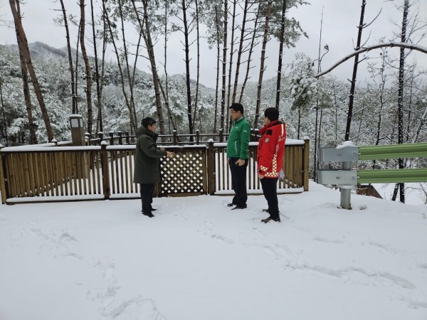 안내센터, 캠핑센터, 야영데크 등 기본적인 시설은 이미 조성되었으며 반려견 동반을 위한 추가 시설물 보완*을 위해 현재 설계 중이다. 3월부터 5월까지 공사를 완료하여 6월 말 개장 할 예정이다. 이번 현장점검을 통해 반려견 전용시설 준비를 위한 애로사항 등을 청취하였다.