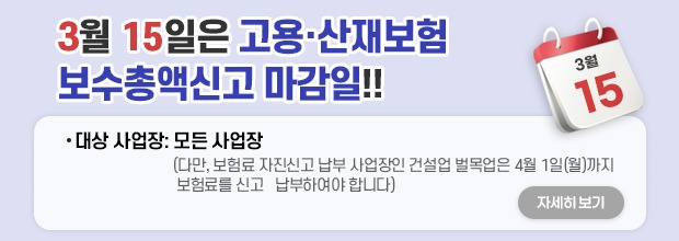고용·산재보험에 가입한 모든 사업장(건설업 제외)은 3월 15일까지 근로복지공단에 「2023년도(귀속) 보수총액신고」를 마쳐야 한다.