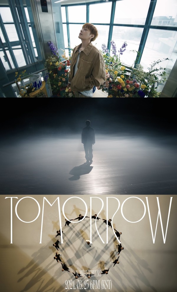 티저 속 용준형은 꽃으로 화사하게 장식된 엘리베이터를 타고 어딘가로 이동했다. 탁 트인 바다를 바라보거나 미지의 공간을 채운 용준형의 아련한 감성과 영상미가 ‘TOMORROW’ 후렴구의 다이내믹한 멜로디와 어우러져 벅찬 느낌을 전했다.