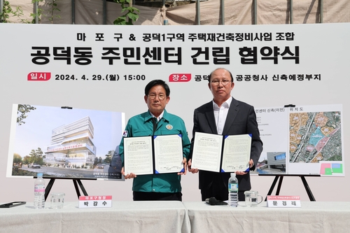 마포구(구청장 박강수)는 공덕1구역 재건축정비조합과 수차례 실무협의를 거쳐 지난 3월 말 공덕1구역 조합총회가 동청사 부지 결정을 승인, 4월 29일 오후 최종적으로 조합과 '공덕동 주민센터 건립협약'을 체결했다고 밝혔다.