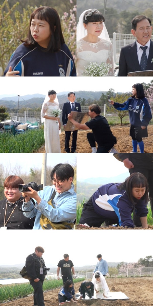시부모님 리마인드 웨딩 촬영 콘셉트를 원빈, 이나영 부부의 청보리밭 결혼사진으로 정한 홍현희는 마늘밭 위에서 그 모습을 재현해보기로 한다.