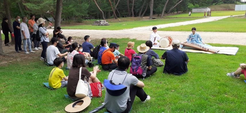 이번 행사는 조경전문가이자 궁궐 해설사로 활동하고 있는 김태휘 씨와 함께 황제릉 능역의 침전*과 석물을 둘러보며 해설을 들은 뒤, 고요하고 아름다운 연지를 배경으로 퓨전국악팀 볕뉘가 가야금과 장구부터 바이올린, 첼로를 넘나들며 선보이는 국악기와 서양 악기의 조화로운 협연을 감상할 수 있다.