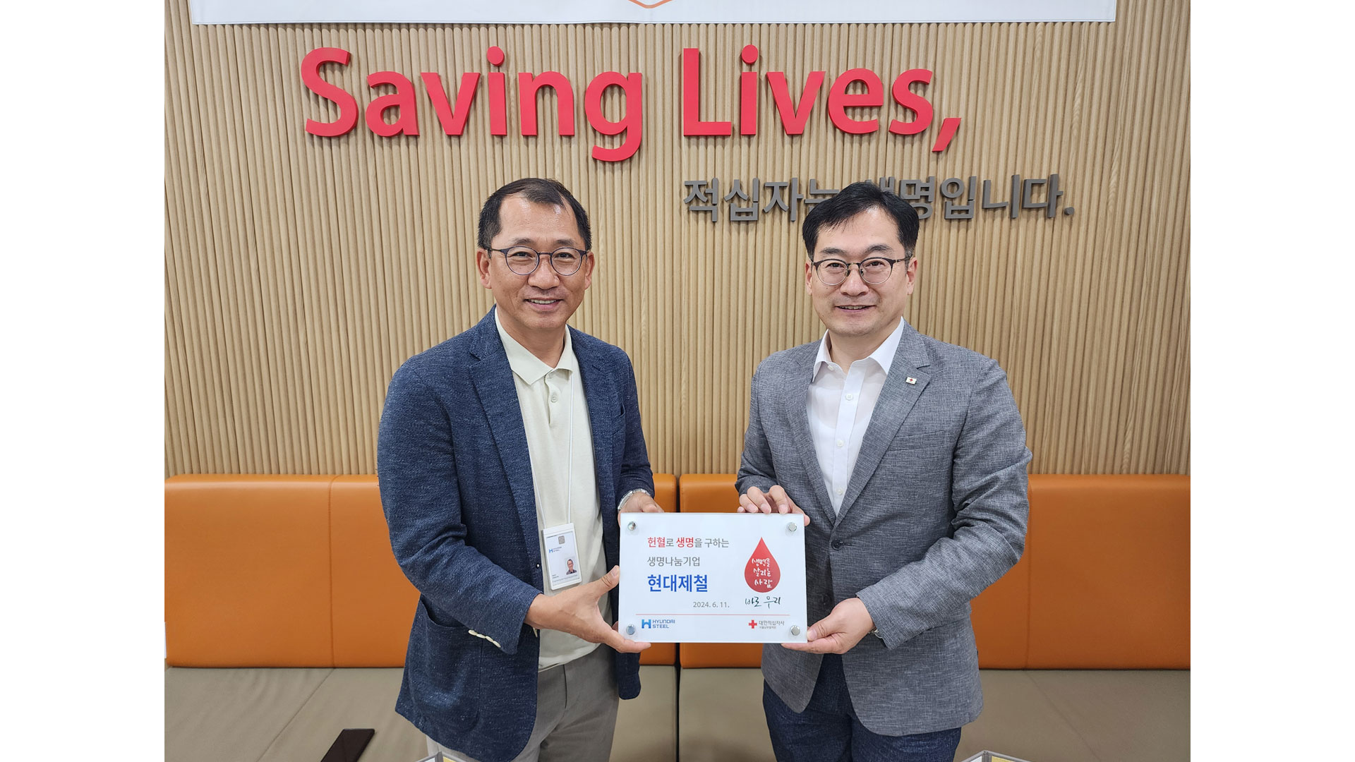 판교 헌혈의 집에서 진행된 협약식에는 현대제철 전략기획본부장 최상건 전무, 서울남부혈액원 최성필 원장이 참석했다.