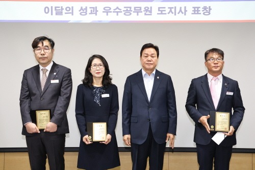 ‘이달의 성과 우수공무원’은 도민이 체감할 수 있고 도정 발전에 실질적인 성과를 거둔 직원에 대해 도지사 표창과 인사 가점 등 인센티브를 부여함으로써 일하는 조직문화를 조성하기 위해 매월 시행하고 있다.