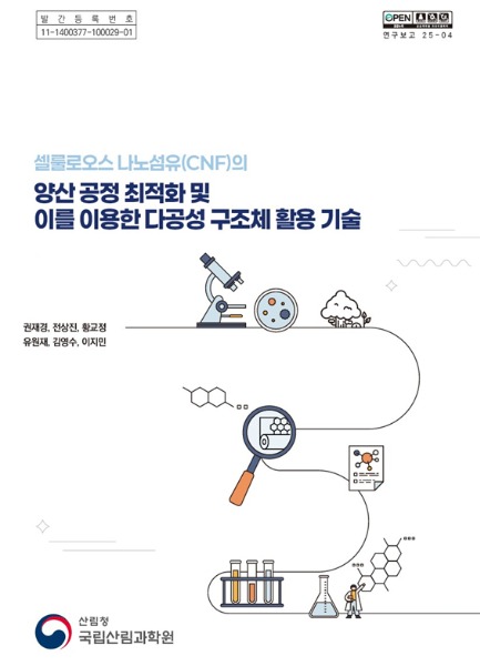 연구 성과는『셀룰로오스 나노섬유의 양산 공정 최적화 및 이를 이용한 다공성 구조체 활용 기술』에 수록되어 있으며, 본 간행물은 국립산림과학원 도서관 홈페이지(https://book.nifos.go.kr)에서 열람할 수 있다.
